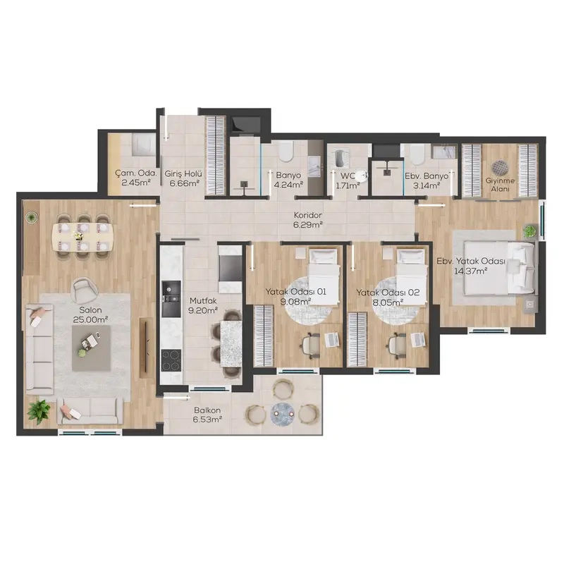 3 | 1 | 128 - 133 m² | 219,970 - 242,952 usd |