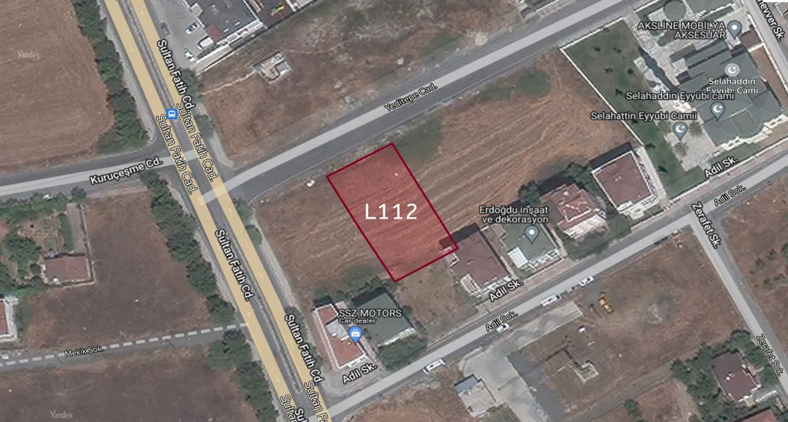 Land for sale in Beylikdüzü, specifically Gurpinar, on the European side of Istanbul, with an area of 925.66 square meters, the permitted age ratio of 30%, subject to licensing for residential construction, and the number of floors allowed for construction: 3 floors.