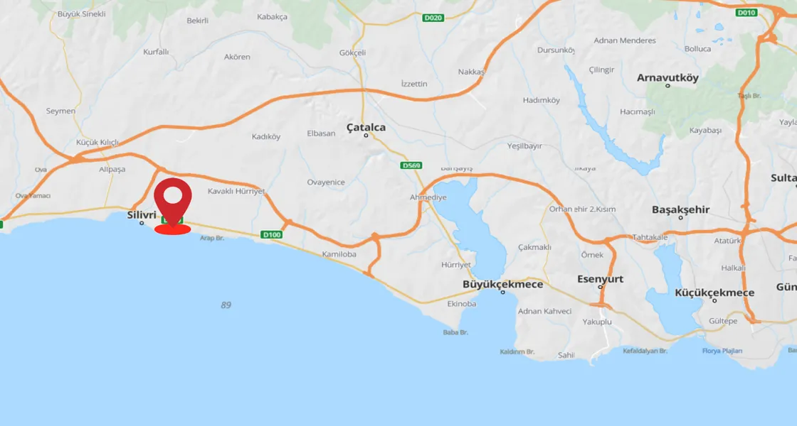 • The land is located in Silivri, close to Beylikduzu and Buyukcekmece, and is located directly on the coast of the Marmara Sea