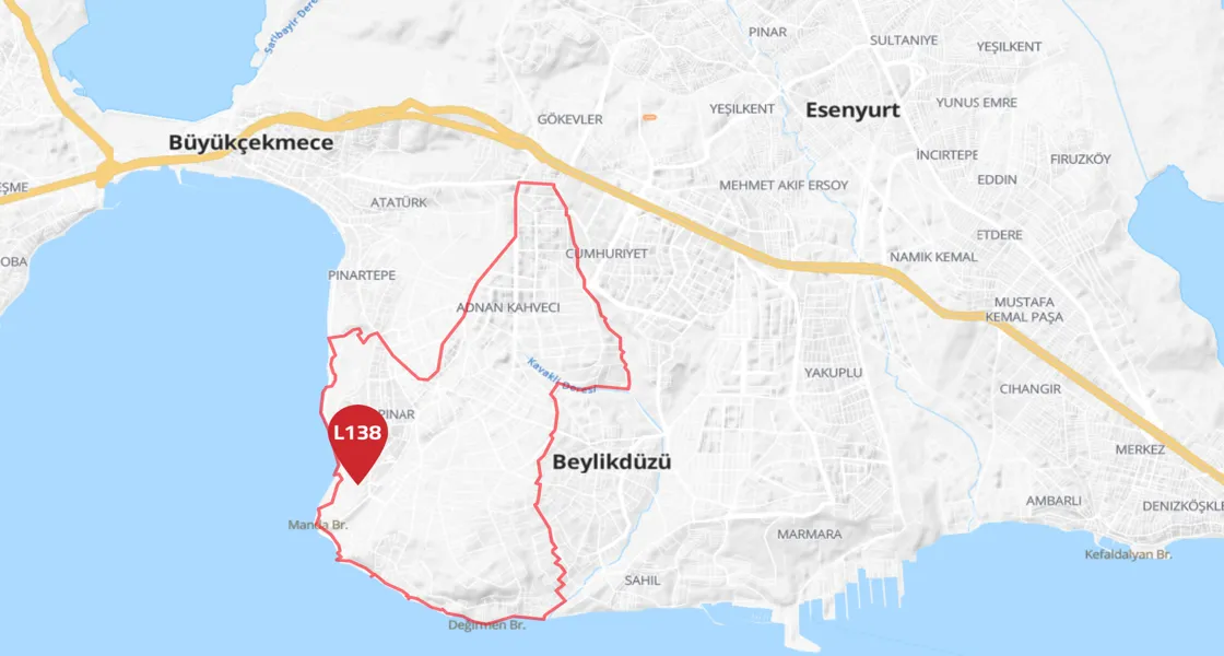 For sale a plot of land of 1997 square meters in Beylikduzu, specifically Gurpinar, distinguished by its proximity to the Marmara coast