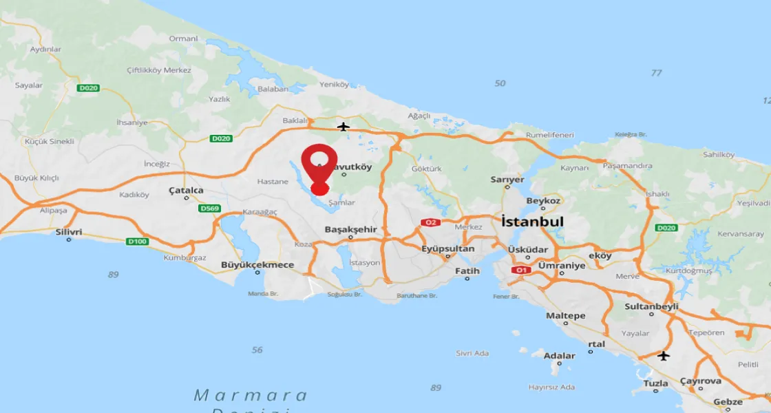 For sale, a plot of land of 6056 square meters on the main street, distinguished by its proximity to the Istanbul Canal in Arnavutkoy.
