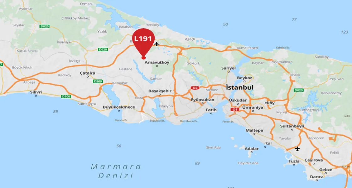 For sale, a plot of land of 6000 square meters, distinguished by its proximity to the new Istanbul Canal, in the Arnavutkoy area, specifically Haraççı.