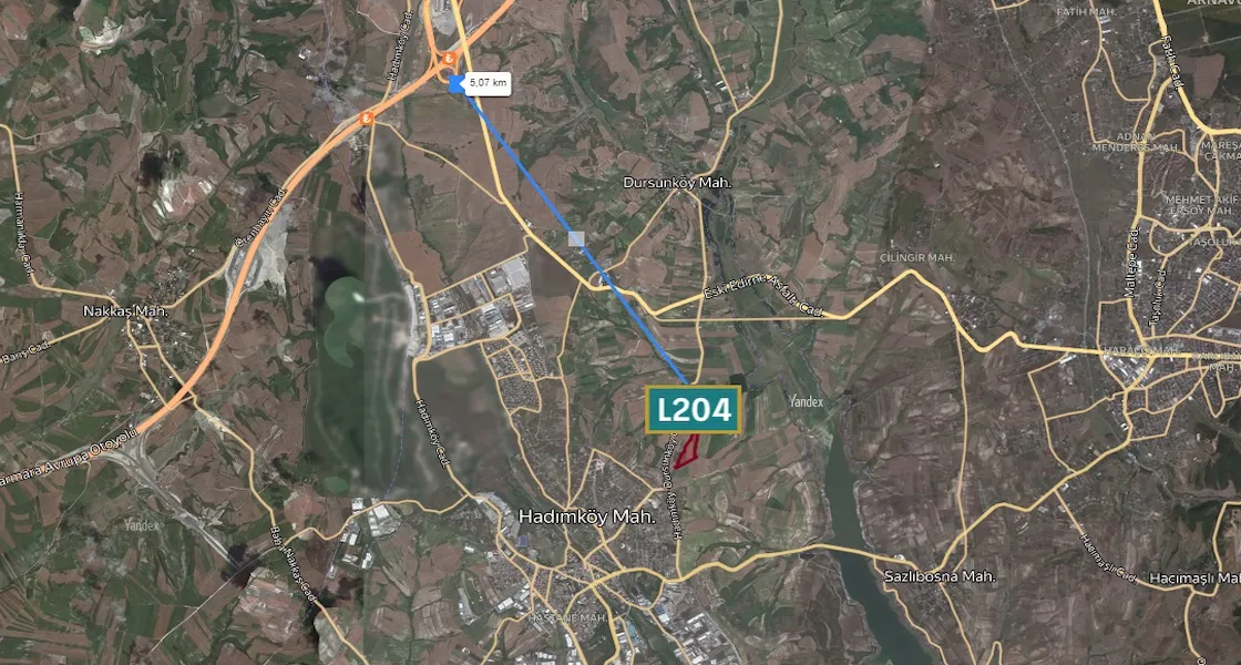 For sale, a plot of land with an area of 7500 square meters, distinguished by its proximity to the new Istanbul Canal in the Arnavutkoy region, specifically Dursunköy.
