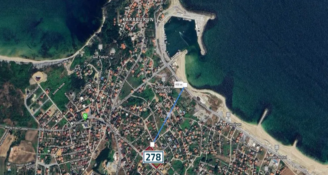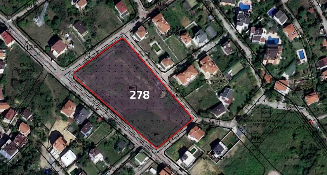 Land for sale in the Karaburun area of Istanbul, boasting a strategic location just 2 kilometers from the Istanbul Canal, 10 kilometers from the new Istanbul Airport, and 100 meters from the highway. The land covers an area of 7,160 square meters and is suitable for the establishment of sports projects, making it a promising investment opportunity in the Arnavutköy region. This land is fully demarcated and licensed for construction, with a construction ratio of 30%. The area is equipped with all essential services, including electricity, natural gas, and water, in addition to an asphalt road ensuring easy access. These features serve as a major attraction for investors looking to develop mixed-use projects in a well-infrastructured environment.