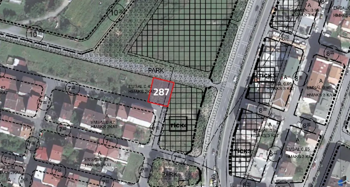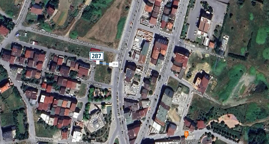A residential land for sale in the center of Arnavutköy, specifically in Taşoluk, with an area of 335 square meters, suitable for development , licensed for construction.