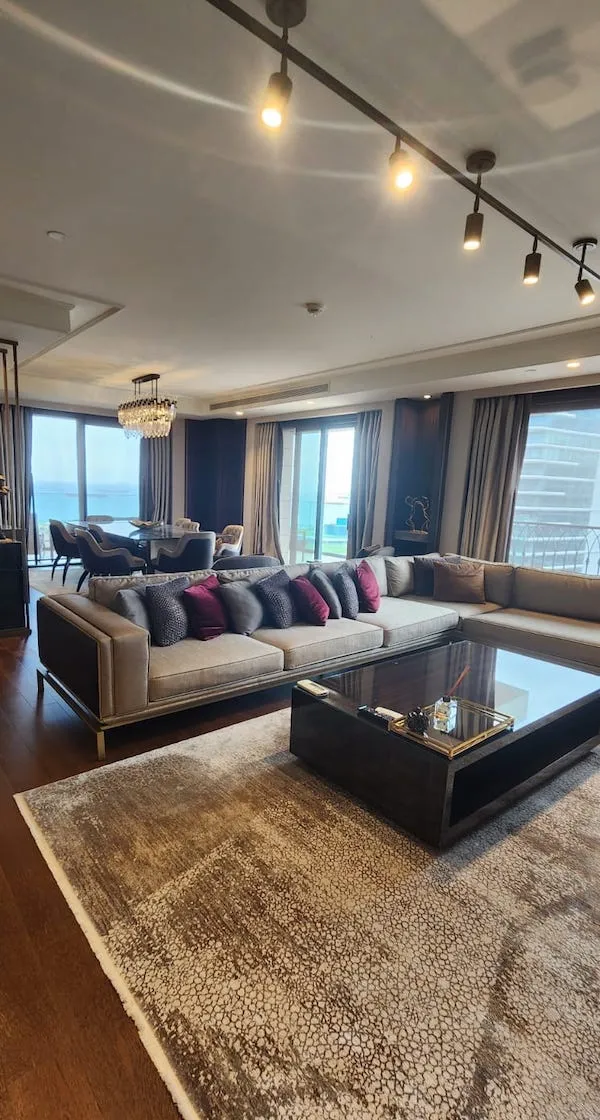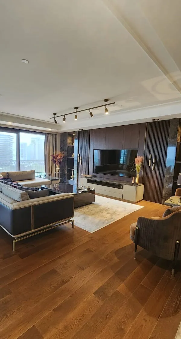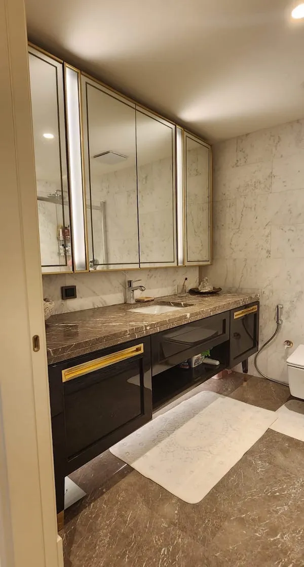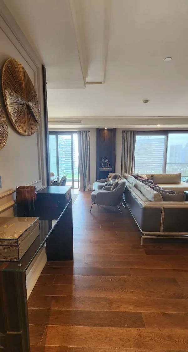 Within the finest and most luxurious Istanbul complexes, Büyükyalı, in the Zeytinburnu district on the European side of Istanbul, on the 7th floor, the apartment area is 220 square meters, a closed kitchen, an elegant complex, an apartment overlooking the Marmara Sea, and the complex is 2 minutes from Marmaray, and it is integrated with services, as it contains: