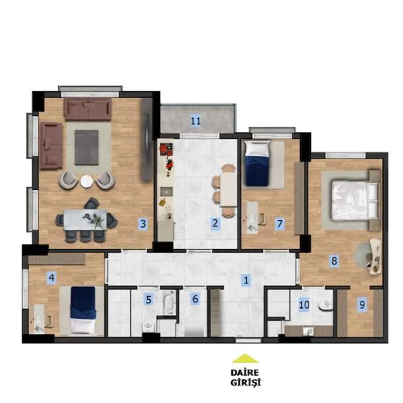 Проект расположен в Бейликдюзю на европейскойстороне Стамбула. Он был построен на участке площадью 6 000 квадратных метров. Он состоит из 3 жилых зданий высотой в 4 этажа для каждого здания. В нем 48 квартир, предлагаемых на продажу с вариантами от 2+. 1 до 5 + 2, площадью от 131 до 222 квадратных метров.