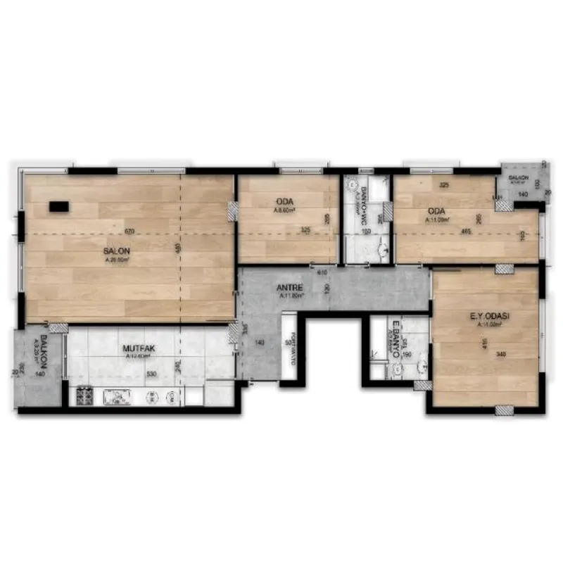 Этот проект был построен на участке площадью 1200 квадратных метров и состоит из 2 жилых зданий высотой в 4 этажа. В проекте предлагается 24 квартиры, выставленные на продажу. Есть варианты недвижимости, начиная от 2 + 1 до 6 + 2, с площадью от 115 до 290 метров квадратных.