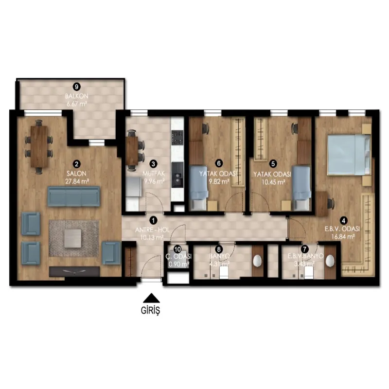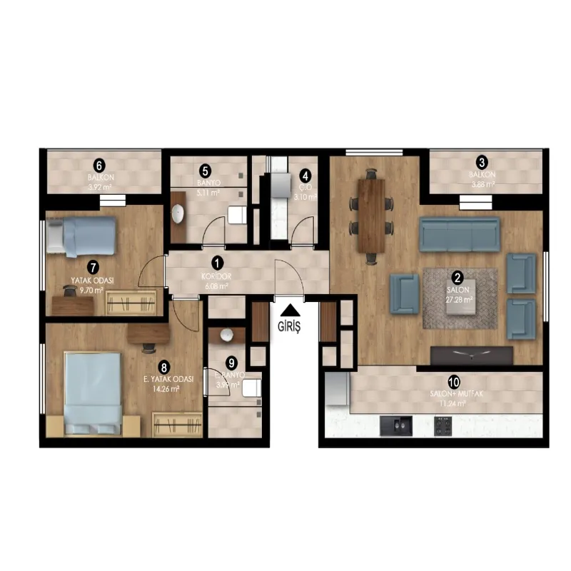 | Planlar | Odalar | Salonlar | Alan | Fiyat | Kat Planları |